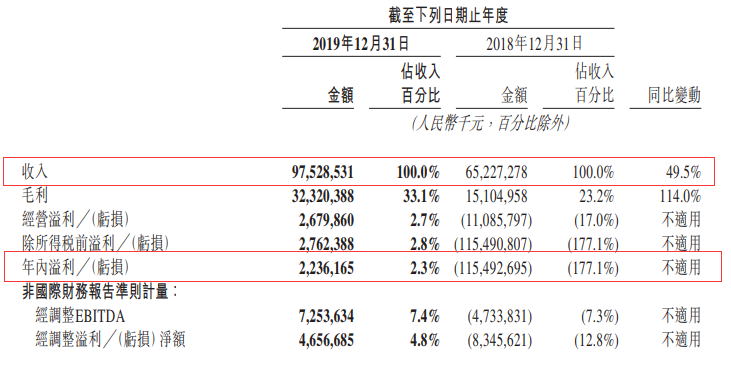 根据财报,2019年美团点评全年营收975.29亿元,去年同期652.27亿元,同比增长49.5%;2019年净利润为22.36亿元人民币,上年同期净亏损1154.77亿元。