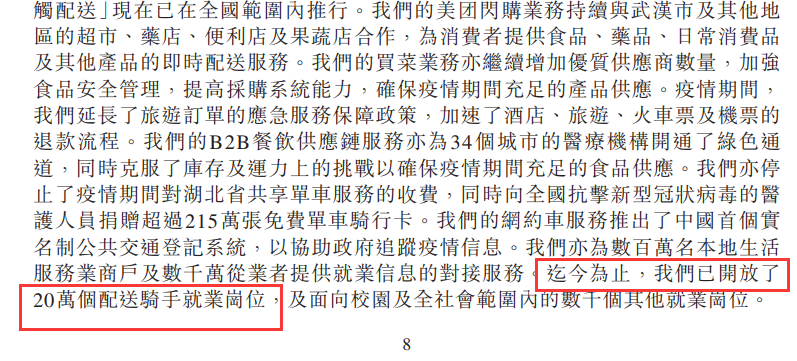 此外,美团还推出安心消费月活动为消费者发放补贴福利,以及与全国超过50,000家到店餐饮商家及数万家酒店及景区开展合作推出安心预订服务。同时,美团也为在疫情期间仍致力于提供配送服务的配送骑手提供额外支持。