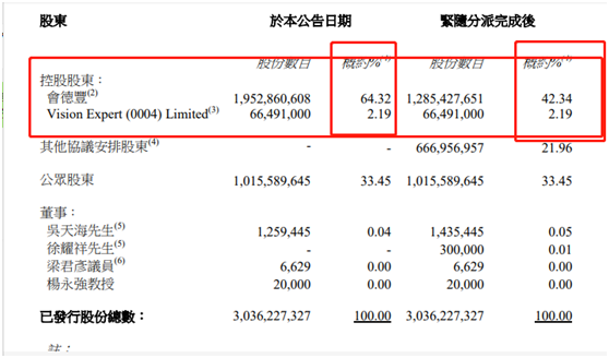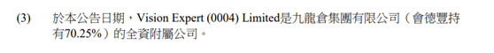 根据九龙仓置业公告显示,在私有化之前,会德丰以及Vision Expert Limited直接持有九龙仓置业合计66.51%的股权,吴光正则间接持有九龙仓置业69.56%*64.32%+2.19%*70.25%=46.28%的股权,私有化之后,吴光正直接持有九龙仓置业44.53%股权,实际持股量只减少了1.7%。