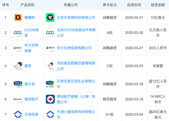3月31日,猿辅导宣布完成10亿美元(约70亿人民币)的G轮融资,本轮融资是由高瓴资本领投,腾讯、IDG资本等跟投,目前猿辅导估值约78亿美元。