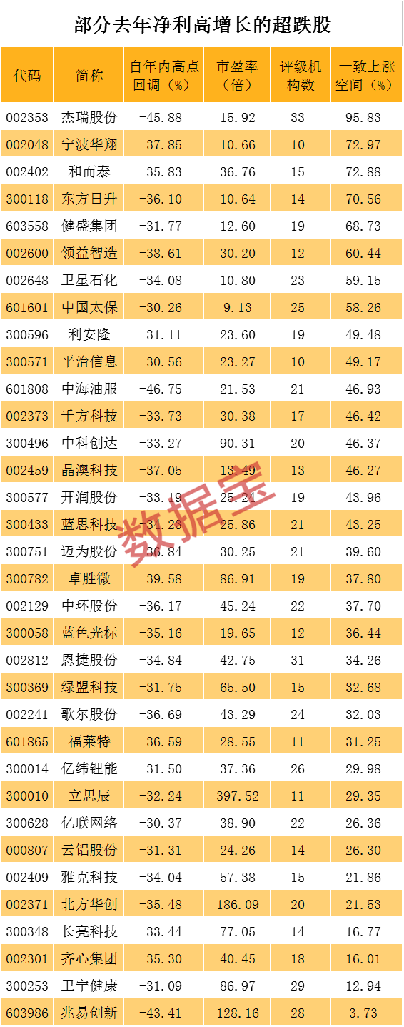 高增长的超跌股名单!股价狂打折,估值跌至个位数,机构追捧
