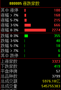 具体看,截止收盘,沪指报2780.64点,涨1.69%,成交额为2331亿元(上一交易日成交额为2256亿元);深成指报10179.20点,涨2.28%,成交额为3646亿元(上一交易日成交额为3592亿元);创指报1916.95点,涨2.80%,成交额为1177亿元(上一交易日成交额为1097亿元)。