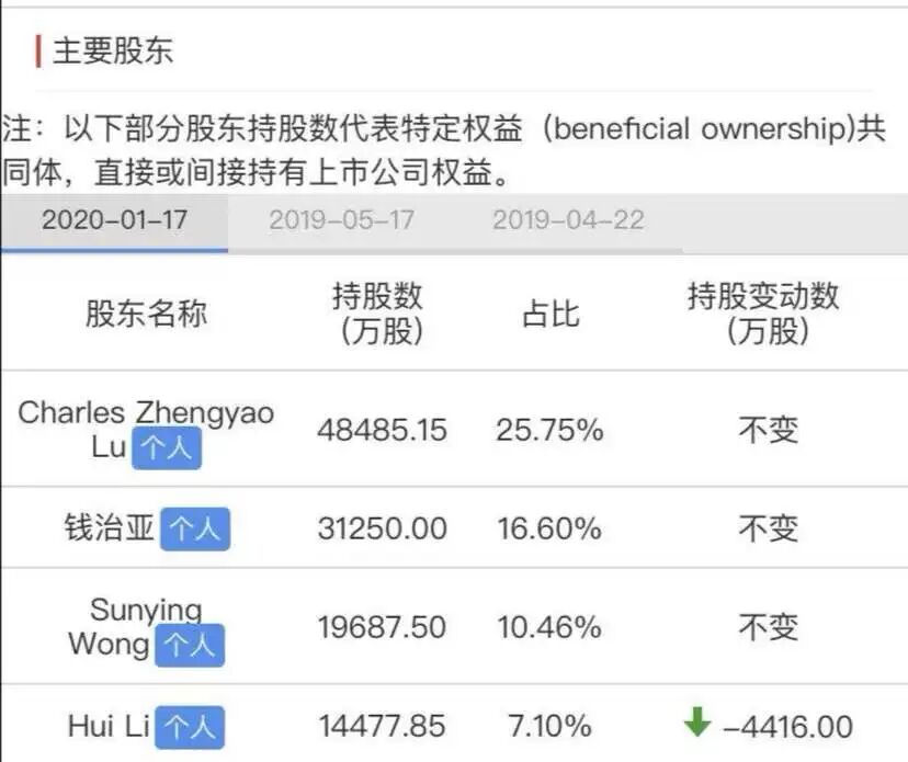 其实,瑞幸部分高管在这次大跌中也损失惨重。据公开信息,陆正耀和钱治亚并未大幅抛售公司股票,仅仅通过质押套现,目前,瑞幸的第一、二大股东分别为陆正耀和钱治亚旗下的家族信托。