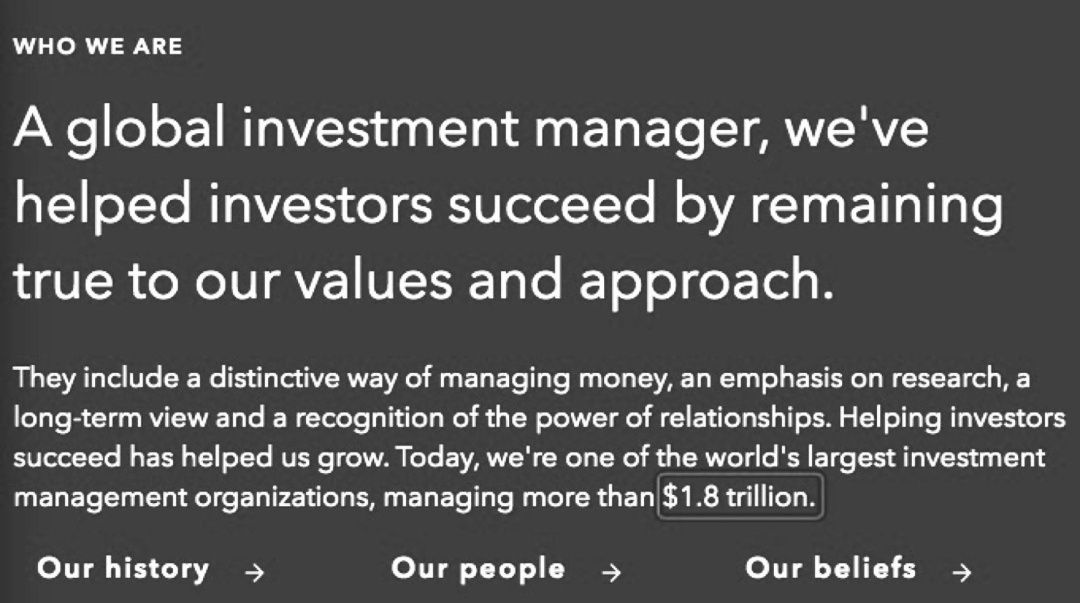 据公司官网,目前集团共管理1.8万亿美元的资产。