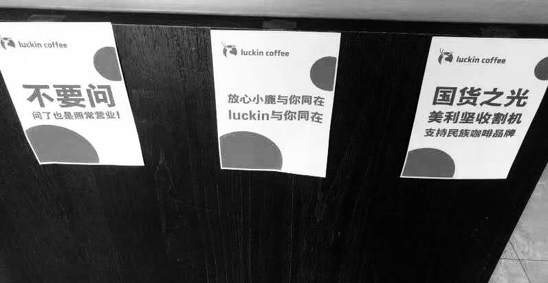 网友们叫嚣着“割洋韭菜”,甚至瑞幸自己都贴出带有“美利坚收割机”字眼的宣传海报。