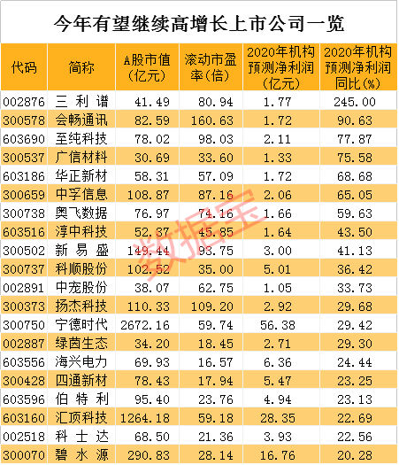 超20家公司全年有望继续高增长