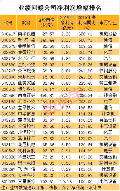 业绩回暖公司名单出炉