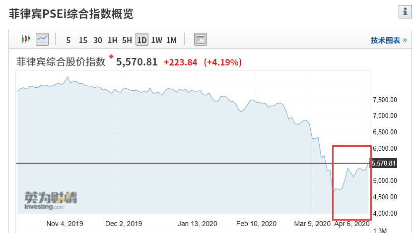 菲律宾指数周一上涨4.2%,较3月19日创下的八年低点上涨20.5%。