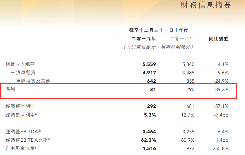 神州租车业绩如何呢?神州租车2019年净利润同比降89.4%。