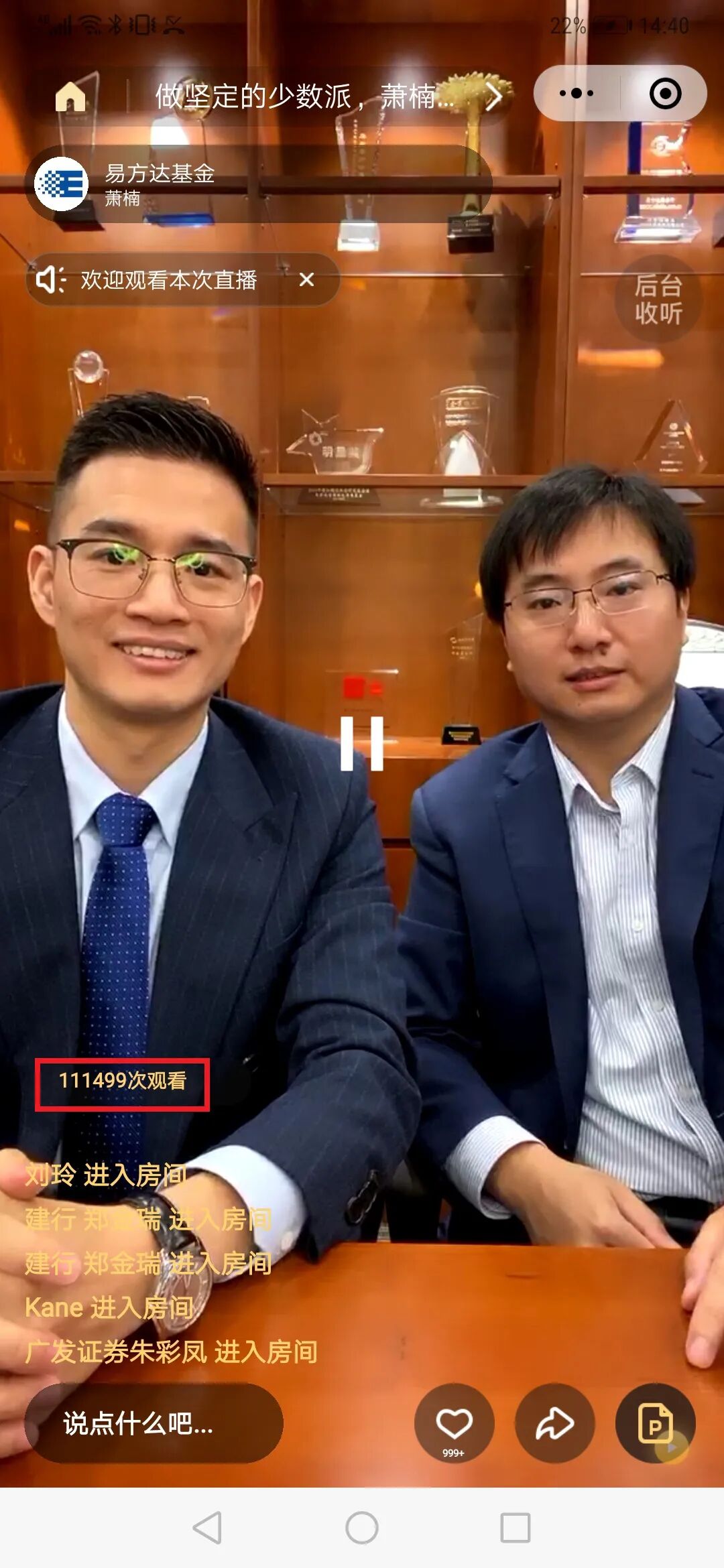 在产品发行前夕,萧楠也做了线上视频路演,分享自己的投资理念,对商业模式的理解以及对市场主流策略的看法,吸引了包括投资者、渠道人员以及业内同行等超过10万人围观。