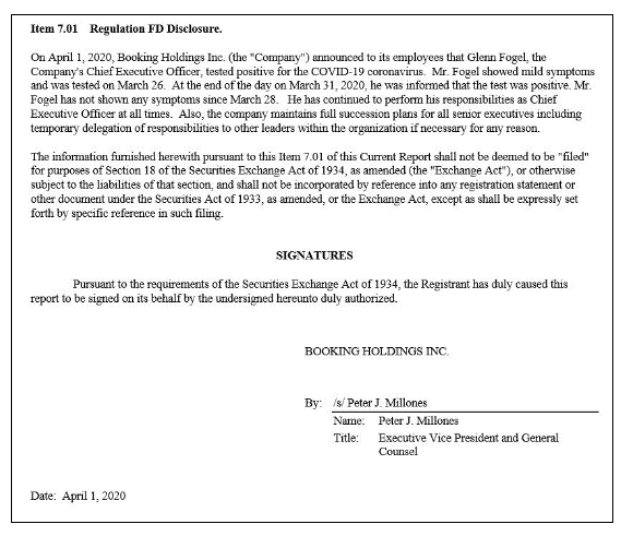 受新冠肺炎疫情影响,全球旅游业龙头上市公司普遍腰斩。除嘉年华邮轮、达美航空等旅游业巨头遭受巨额损失外,美国最大的在线旅游公司缤客公司也因为疫情市值蒸发2100亿人民币,这相当于损失了两个携程公司。在股价跌到低位后,这家公司4月2日向SEC递交的文件显示,该公司的CEO福格尔的新冠病毒检测呈阳性。