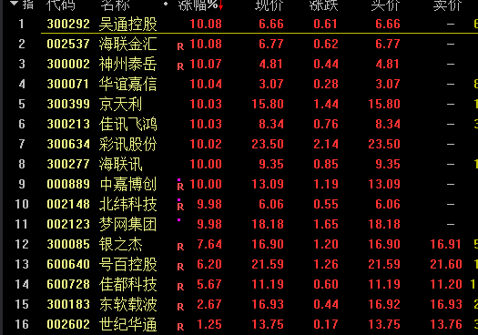 今日早盘,华为概念股也大幅拉升,锦富技术、天音控股、国农科技、思特奇等9股涨停,方正科技、国联股份、万兴科技等涨幅居前。