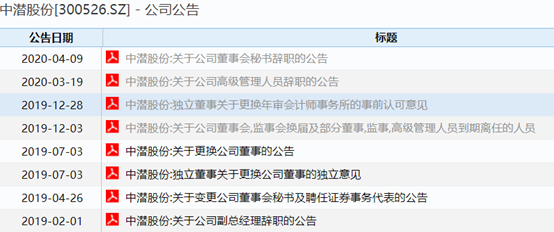 这位董秘于去年11月入职中潜,起先担任证券部主任,2019年12月3日,由于董秘的卓泽鹏任期届满,张继红才被中潜股份聘任为董秘,任职时间最多不超过5个月。但他也绝非特例,2019年以来,中潜高层不稳,多位高管、董事陆续辞职。