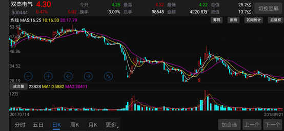 不过陆某阳持有的这只股票表现并不是太尽如人意。在同年9月21日,双杰电气盘中股价曾达到23.66元/股,此后股价持续下挫,2018年7月6日股价盘中一度降到8.06元/股,2018年7月25日的收盘价为9.44元/股。