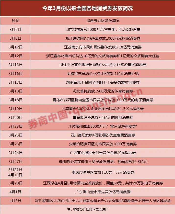 3月份以来,全国多地政府“撒钱”,收红包的你促销费,欢喜的是经营回暖的各类商家。