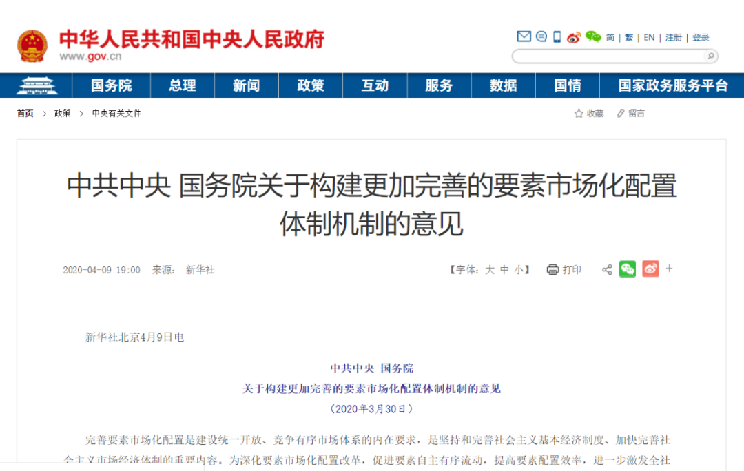 完善要素市场化配置是建设统一开放、竞争有序市场体系的内在要求,是新时代加快完善社会主义市场经济体制的重要内容。《意见》出台,是贯彻落实党的十九大和十九届四中全会的重要举措。