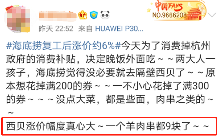事实上,恢复堂食以来,涨价的并非海底捞一家。据消费者表示,明星餐饮企业的西贝筱面村、九毛九、太二酸菜鱼的部分菜价也有所上涨。