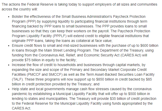 在这个数据公布的同时,美联储再出重招。据美联储网站,美联储周四采取了进一步行动,提供了高达2.3万亿美元的贷款来支持经济。这笔资金将帮助各种规模的家庭和雇主,并增强州和地方政府在冠状病毒大流行期间提供关键服务的能力。