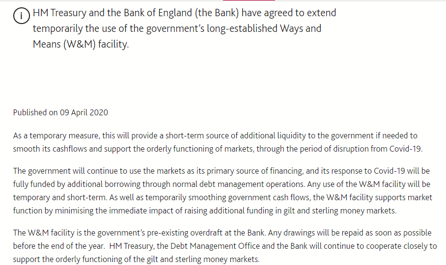 4月9日,英国央行也有动作。该央行与财政部合作,宣布临时扩展Ways and Means设施。