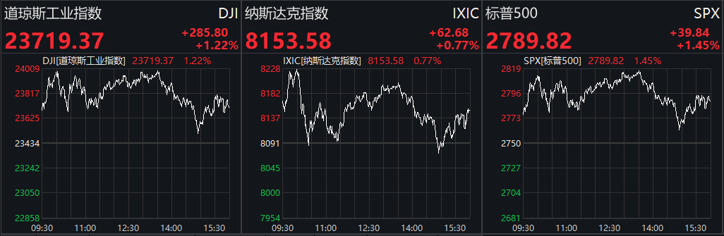 在上述刺激方案和讲话之后,美股震荡走高。截至收盘,道指涨1.22%报23719.37点,标普500涨1.45%报2789.82点,纳指涨0.77%报8153.58点。本周,道指涨12.67%;纳指涨10.59%,创2009年来的最大单周涨幅;标普500指数涨12.1%,创1974年以来的最大单周涨幅。