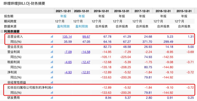 3月27日,哔哩哔哩发布2019全年财报,其中显示2019年实现总营收达67.8亿元人民币,同比增长64%,其中第四季度营收同比增长74%,达20.1亿元人民币。但是其净利润依然为负数,扣非后归母净利为-12.89亿元,同比降133.63%。