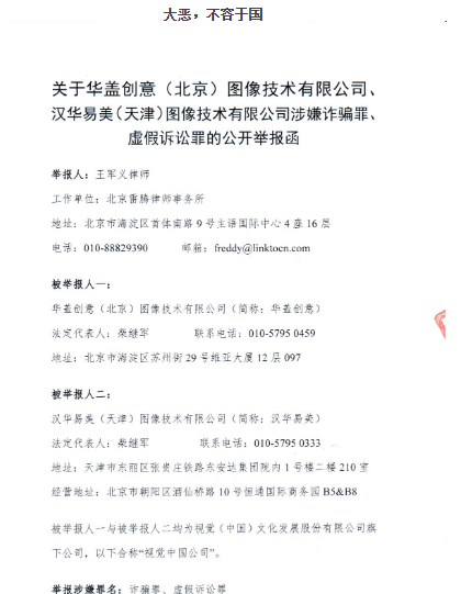 视觉中国被实名举报涉嫌诈骗罪和虚假诉讼罪,公司这样回应……