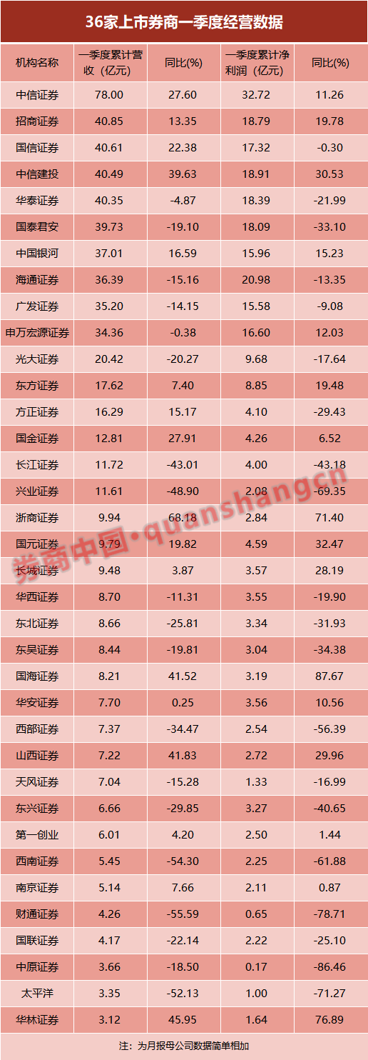 券商一季报榜单出炉 中信海通建投抢占净利前三 券业利好还在积聚