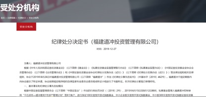 2019年12月,中基协发布纪律处分决定书,决定取消福建道冲会员资格,撤销其管理人登记。