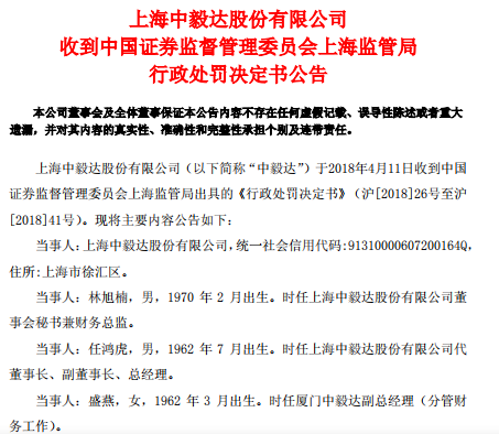 经证券时报·e公司记者确认,本案中涉及的上海某股份公司为上市公司中毅达(现*ST毅达、600610),任某某为任鸿虎,时任公司代董事长、副董事长、总经理;林某某为林旭楠,时任公司董秘兼财务总监;获刑四人目前均未在公司任职。