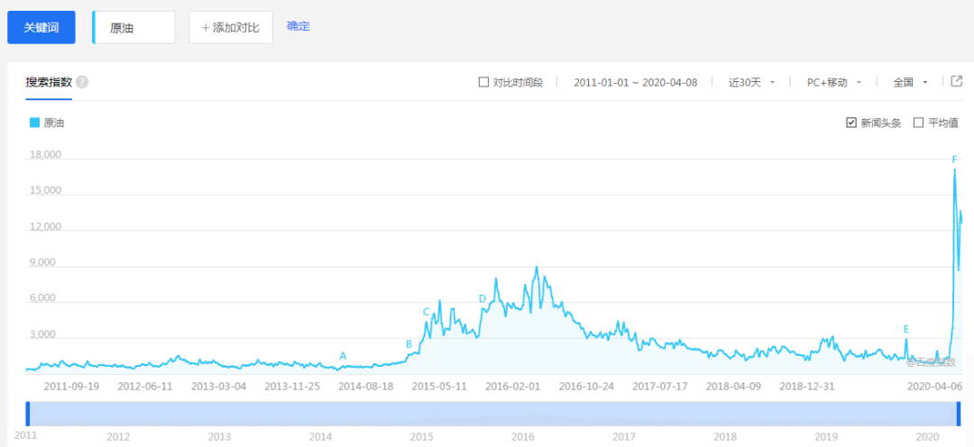 超低油价和油市背后的博弈足够吸引眼球。据百度统计,3月中旬起,“原油”关键词的搜索指数快速飙升,创出其有记录以来的最高水平。与此同时,“原油交易”和“原油投资”等相关关键词的搜索频率也有明显提高。可见,想要抄底的投资者早已急不可耐。