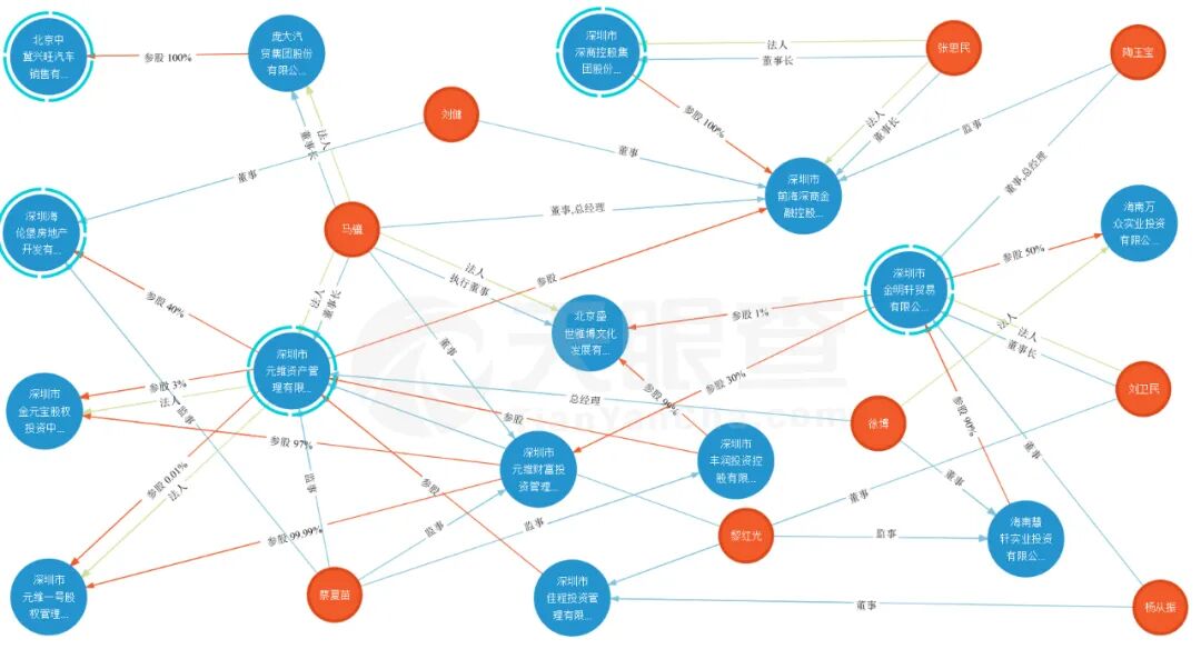 天眼查数据显示,深商金控成立于2013年05月24日,主要经营范围为高科技行业、环保节能产业企业投资等。深商金控的股东分别是元维资产、深商北方、国民运力和深商控股,持股比例分别是40%、30%、25%和5%。深商金控的法定代表人和董事长是张思民,张思民同时也是深商控股的法定代表人和董事长;元维资产法定代表人、董事长Ma Xiang(马骧)是深商金控董事总经理,元维资产的总经理刘健是深商金控的董事。