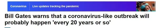 微软创始人比尔·盖茨警告说,新冠病毒是很多人一生中经历过的最大事件,但人们现在已经意识到,未来,很可能这样的病毒大暴发每隔20年左右就会发生一次。