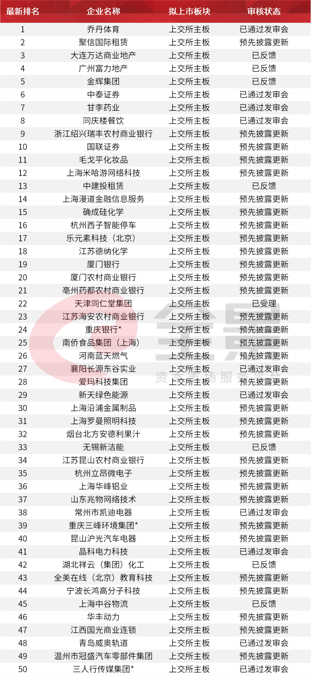 带“*”为西部12省区市及比照执行的地区首发在审企业。