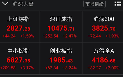 截至收盘,上证综指涨超1.59%,深证成指涨超2.47%,创业板指涨超3%以上。