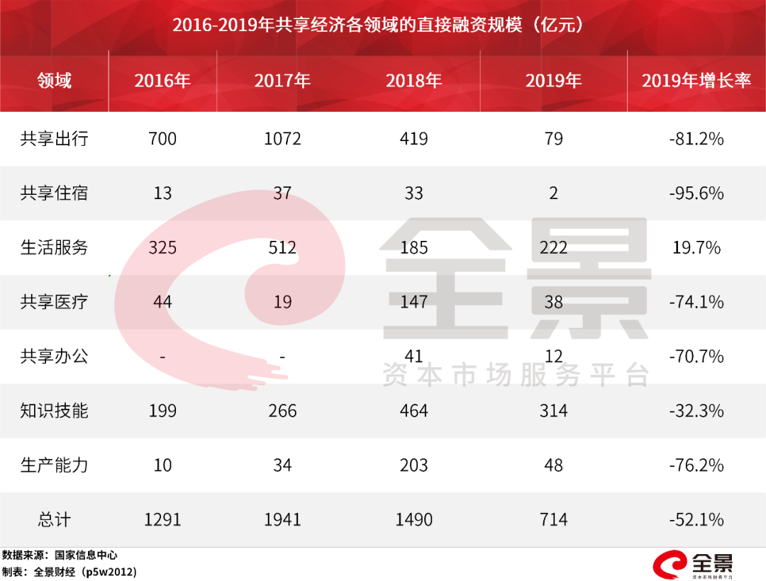 其实,早在2019年,共享经济已显露疲态,市场交易规模增速显著放缓,直接融资规模也大幅下降。据国家信息中心披露的数据显示,2019年共享经济领域的直接融资约714亿元,同比下降52.1%,直接被腰斩。