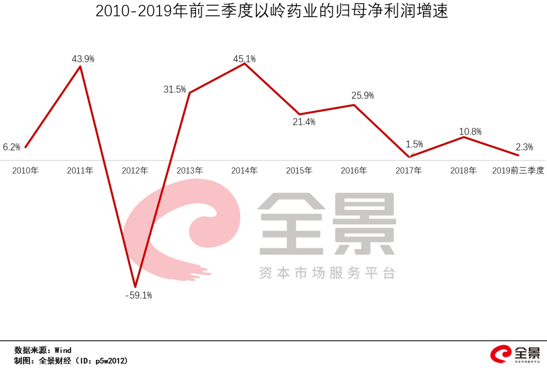 其实,在疫情爆发之前,以岭药业的业绩增长几乎陷入停滞,2019年前三季度的归母净利润增速已跌至2.3%。