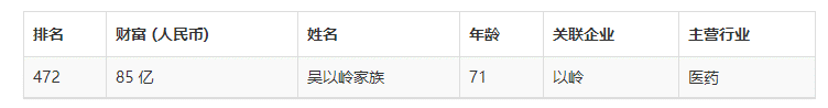 而在2019年的胡润百富榜中,吴以岭家族的财富总额为85亿元。
