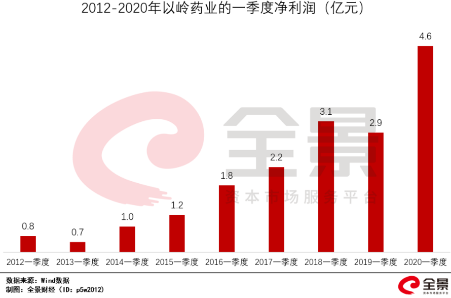 3月30日,以岭药业披露业绩预告,预计2020年第一季度净利润为4.3亿-4.6亿元,同比增长50%-60%。创下上市以来单季度最高盈利记录。