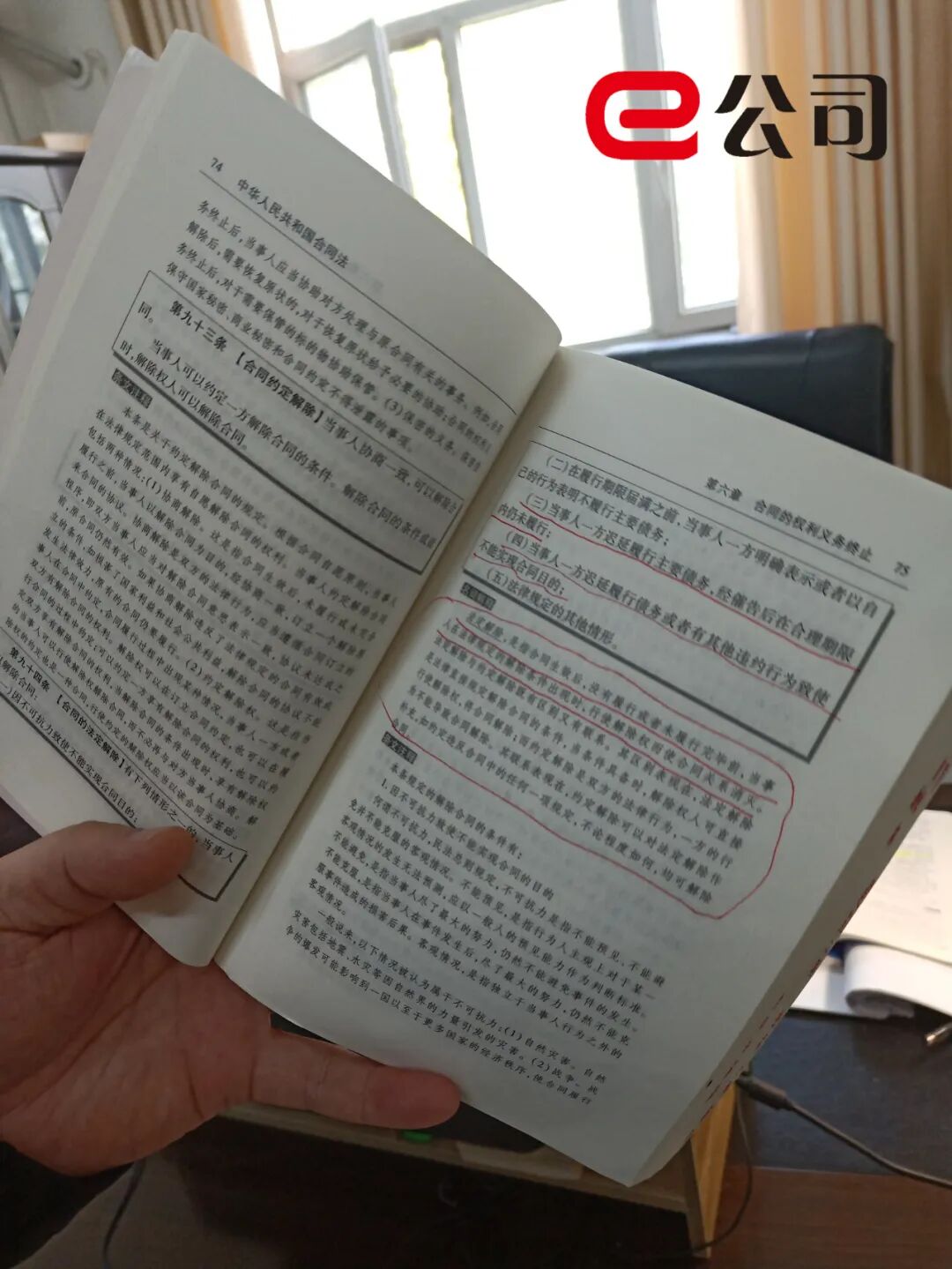 程福亮说,合同法规定了“法定解除”条款,双方《股权转让协议》合同已经终止。说到这里,他拿起了办公桌上一本合同法,向记者展示其中被标红的条文。