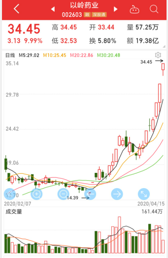 连花清瘟火遍国内外,4月14日,以岭药业发布公告称,公司药品连花清瘟胶囊(颗粒)新增适应症申请获得批准,处方药说明书中增加“在新型冠状病毒性肺炎的常规治疗中,可用于轻型、普通型引起的发热、咳嗽、乏力。”4月13日以来,以岭药业连续收获三个涨停板,不仅股价创下上市以来新高,市值达到414.7亿亿,年内以来股价已经暴涨177.15%。红日药业也发布公告称,其生产药品获批适用于新冠肺炎。