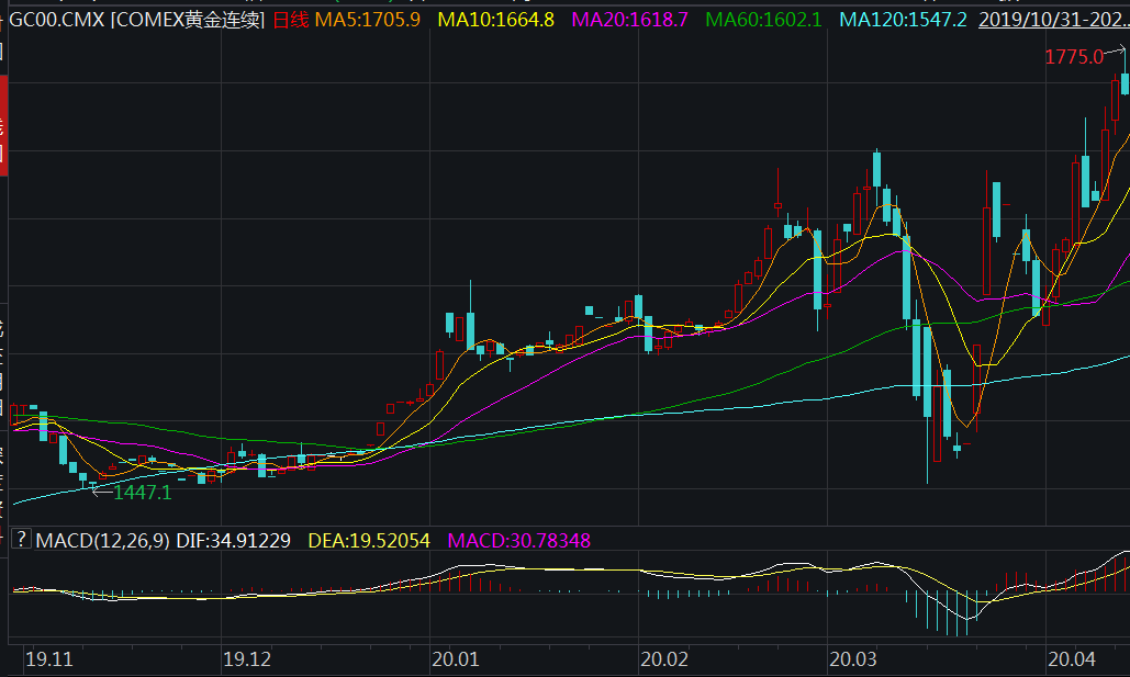 在美元流动性和油价危机影响下,黄金在2月和3月曾出现大幅回调。不过4月以来黄金上涨幅度明显,价格也是节节攀升,在4月1日到14日的9个交易日理,COMEX黄金期货就从最低1570美元/盎司涨至最高1770美元/盎司,涨幅超10%。