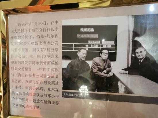 事实上,据亲历者回忆,邓小平在接受范尔霖赠送的纽约证券交易所金质证章后,并没有当场回赠对方股票。之后,范尔霖才获得中国赠送的礼物:一张上海飞乐音响股份有限公司的股票。随后,他亲自来到仅有两只股票挂牌交易、由一间10平方米小房间简单装修而成的股票交易柜台——中国工商银行上海信托投资公司静安证券业务部,办理了飞乐音响股票的过户手续。中国证券博物馆副馆长金星告诉记者,回到美国后,约翰·范尔霖将飞乐音响股票以及与邓小平的合影照片一起放进纽交所的陈列厅里面。