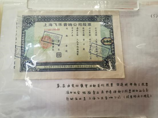 证券时报记者了解到,这一赠品的原收藏人是吴言涛,为原中国人民银行上海市分行金融行政管理处副处长。他在赠品旁亲手书写指出,上海飞乐音响公司,是我国第一家定向集资内部发行股票,后因违规将部分股票流向社会,并经检查后再申请将部分股票转向社会公开发行的企业。吴言涛指出,这张飞乐音响股票样张的股票格式并不规范。