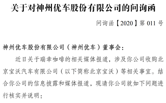 同一天,据全国中小企业股份转让系统官网消息,神州优车收到问询函,要求说明瑞幸咖啡事件对公司产生的影响等问题。