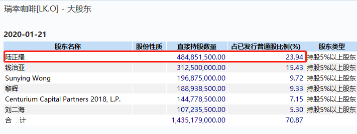 而集团主席兼大股东陆正耀持股量则大降至8.81%,退居成为第三大股东。