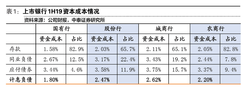 间接影响主要是体现在主动负债成本率下降。2008年调降超储利率后,银行间同业拆借加权平均利率从2008年11月的2.3%快速下行146BP至2009年3月的0.84%,逼近0.72%的超储利率。截至2020年3月末,银行间同业拆借利率已经下行至1.4%的低位,超储利率下调背景下还有进一步下行空间,主动负债占比高的银行相对受益。