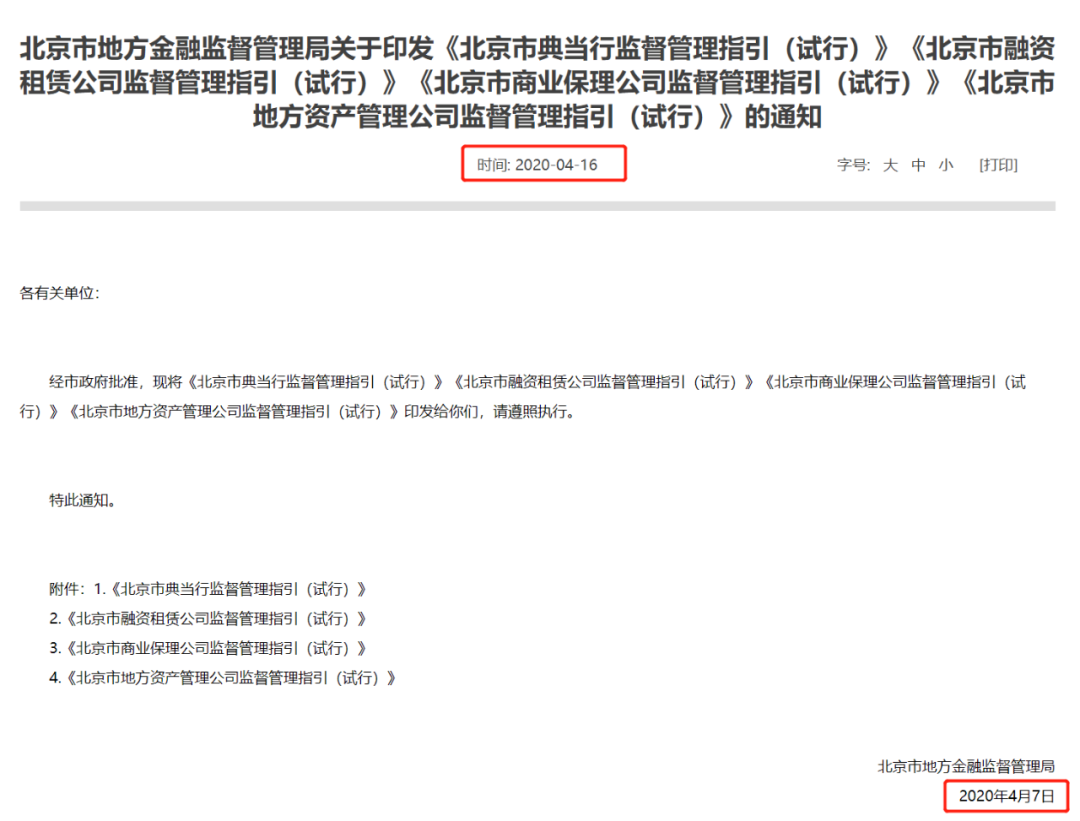 王健称,仔细对比,《北京融租指引》与2019年11月份的网传版本有90%的内容接近一致,严格细致程度可以比肩银保监会2014年出台的《金融租赁公司管理办法》。并且《北京融租指引》文件落款日期是4月7日,但北京金融局4月16日才正式公布,直接要求遵照执行,强势监管再度明确。