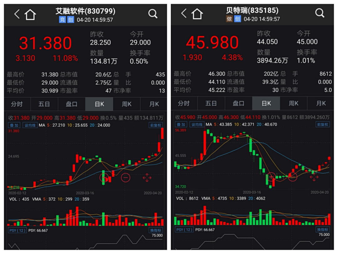 上周,贝特瑞和艾绒软件2家企业通过精选层辅导验收,从20日表现来看,两公司股价均迎来大涨。前者收涨4.38%,成交额高达3894万元,排名第二;后者收涨11.08%。