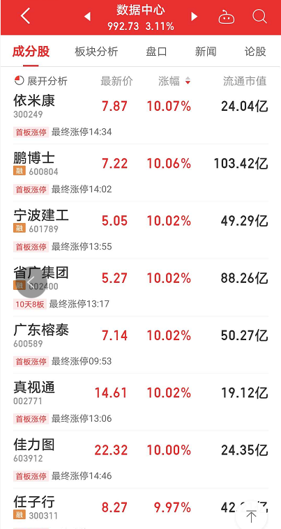今日,包括鹏博士、依米康、任子行、广东榕泰等近10只数据中心概念股逆市涨停,数据中心概念指数逆市上涨超3%。