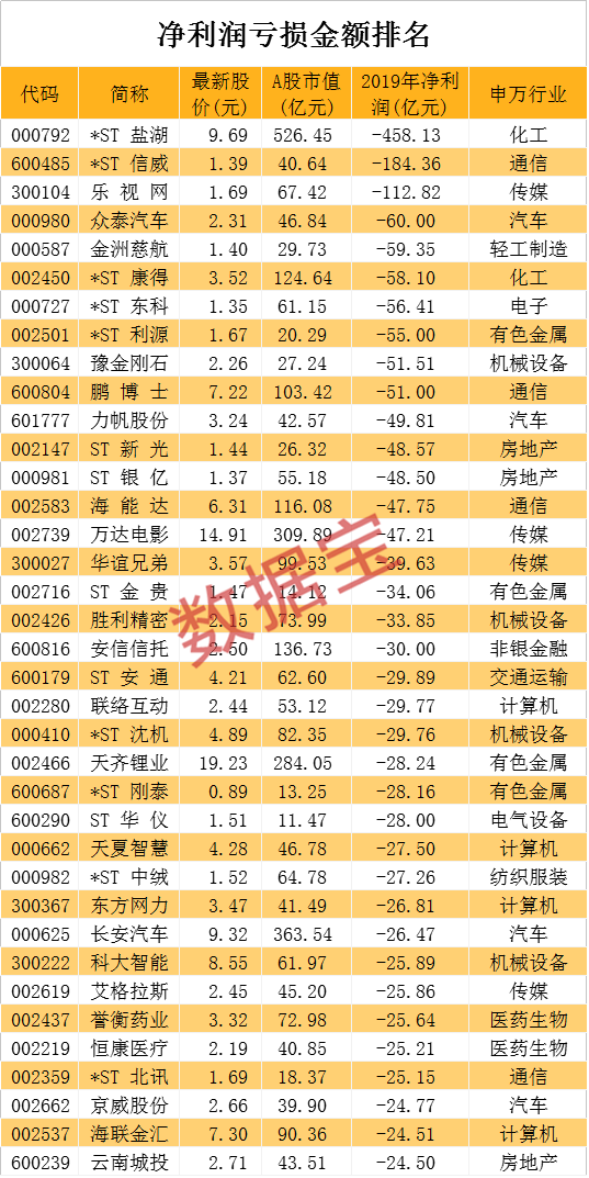 *ST盐湖、*ST信威、乐视网均亏损超过百亿元。*ST信威昨晚发布年报数据,去年公司净利润亏损184.36亿元,亏损原因包括担保事项计提营业外支出和确认预计负债和资产减值损失等。因连续亏损,公司股票已停牌,等待交易所做出决定是否暂停上市。